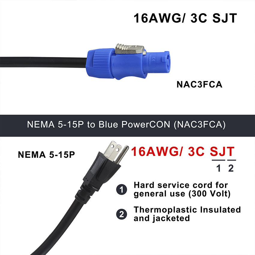 ชื่อ:NEMA 5-15P ไปยังสายไฟต่อพ่วง powercon