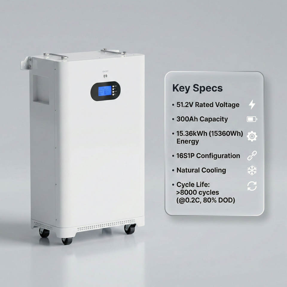 ตู้เก็บแบตเตอรี่ตั้งพื้นสำหรับใช้ในบ้าน LiFePO4 15kwh 51.2V ตู้เก็บแบตเตอรี่15kWh มีล้อรับประกัน10ปี