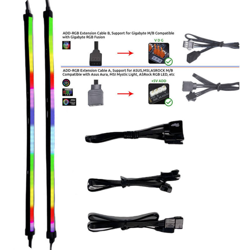 นีออน12ชิ้นที่ยึดแม่เหล็กที่แข็งแรง2x15.7in สีรุ้ง RGB พีซีไฟ LED แถบ5V 3-PIN ออร่าซิงค์กิกะไบต์ฟิวชั่น RGB MSI MSI Mystic