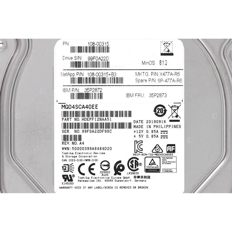 Netapp X477A-R6ฮาร์ดไดรฟ์4TB 7.2K 6G NL SAS 3.5 LFF สลับร้อนสำหรับการจัดเก็บเครือข่าย DS4246
