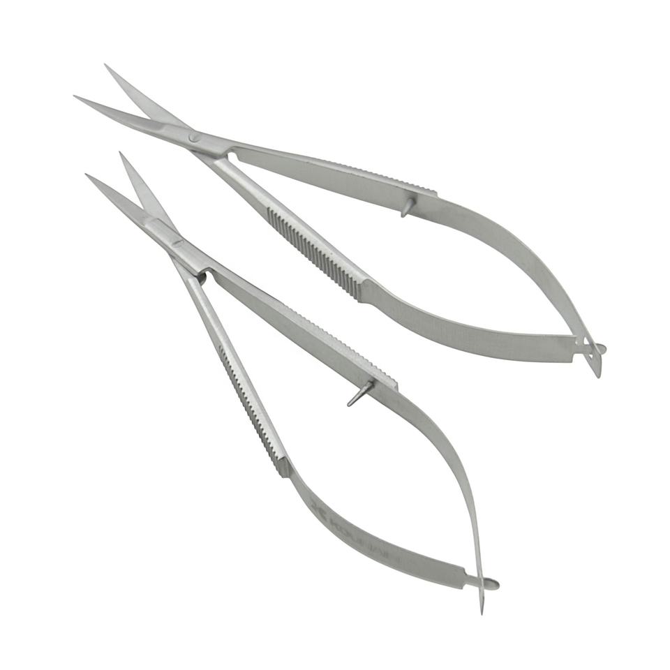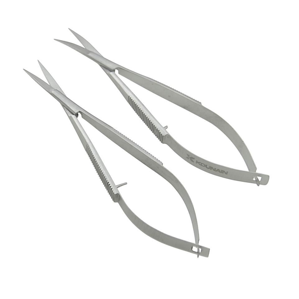 กรรไกรขนาดเล็กทำจากผ้าซาตินสเตนเลสใหม่ขนาด12ซม. ด้ามจับสปริงเล็มขนบนใบหน้าคมโค้งตรงรูจมูกหนวดสวยงาม
