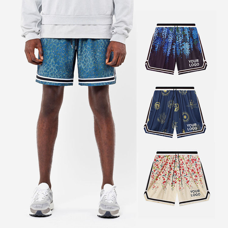 กางเกงขาสั้นตาข่ายสำหรับผู้ชายพร้อมกระเป๋า5 "ใส่เล่นบาสเก็ตบอลเล่นกีฬาวินเทจพิมพ์ซับลิเมชันเต็มรูปแบบกำหนดได้เอง2024ใหม่