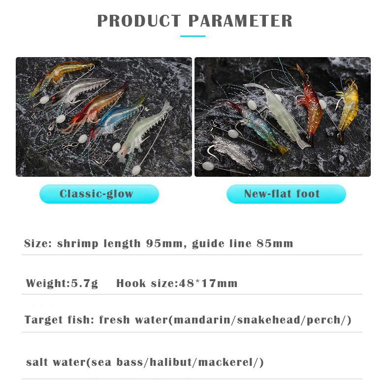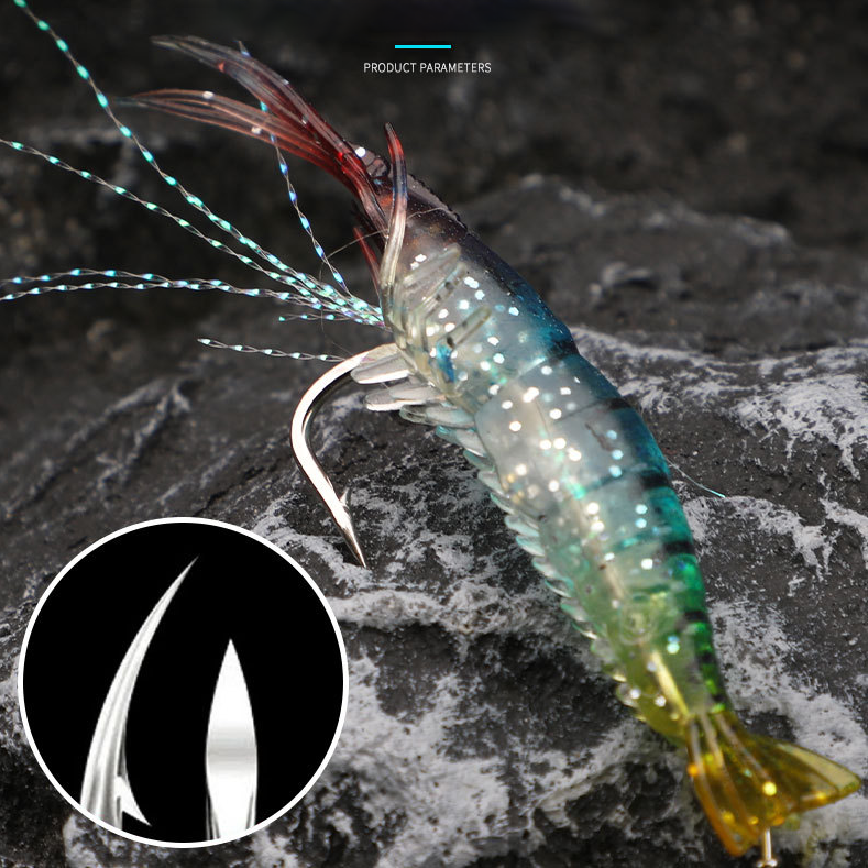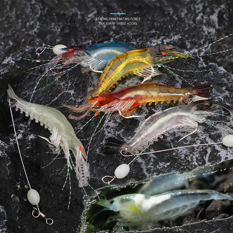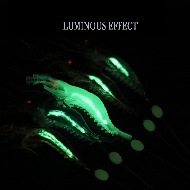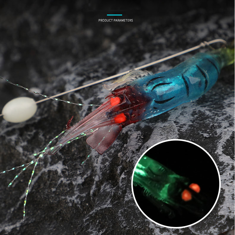 เหยื่อกุ้งนำเรืองแสง95มม. มาใหม่พร้อมเส้นนำทางและตะขอเหยื่อล่อปลาน้ำเค็มแบบสดเหยื่ออ่อน