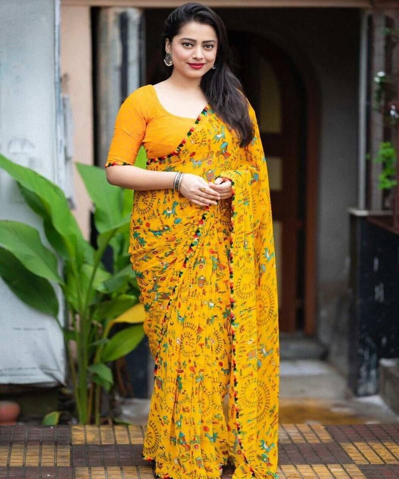 มาใหม่ georgette warli พิมพ์ลายลูกไม้งานชายแดนกับเสื้อ unstitched สวมใส่สบายขายส่งราคาเสื้อผ้าชาติพันธุ์