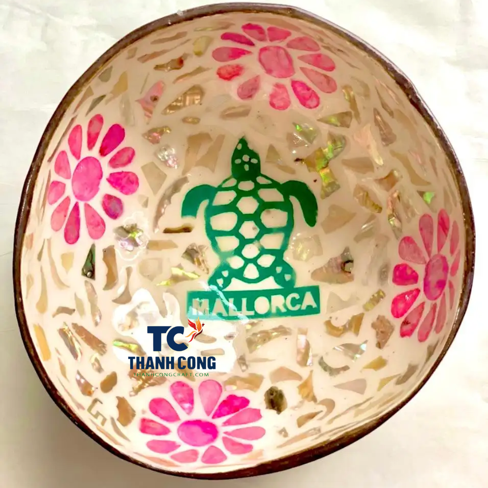 ชามมะพร้าวโมเสกทำด้วยมือมาใหม่พร้อมแม่ของไข่มุกฝังงานฝีมือของตกแต่งบ้านที่เป็นมิตรต่อสิ่งแวดล้อม