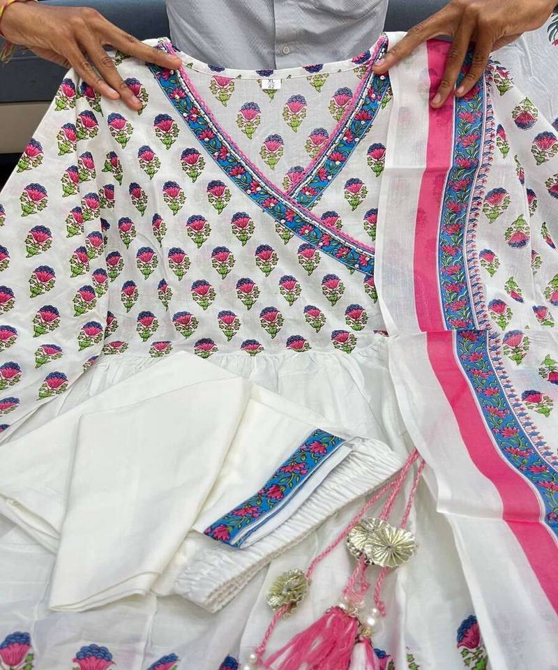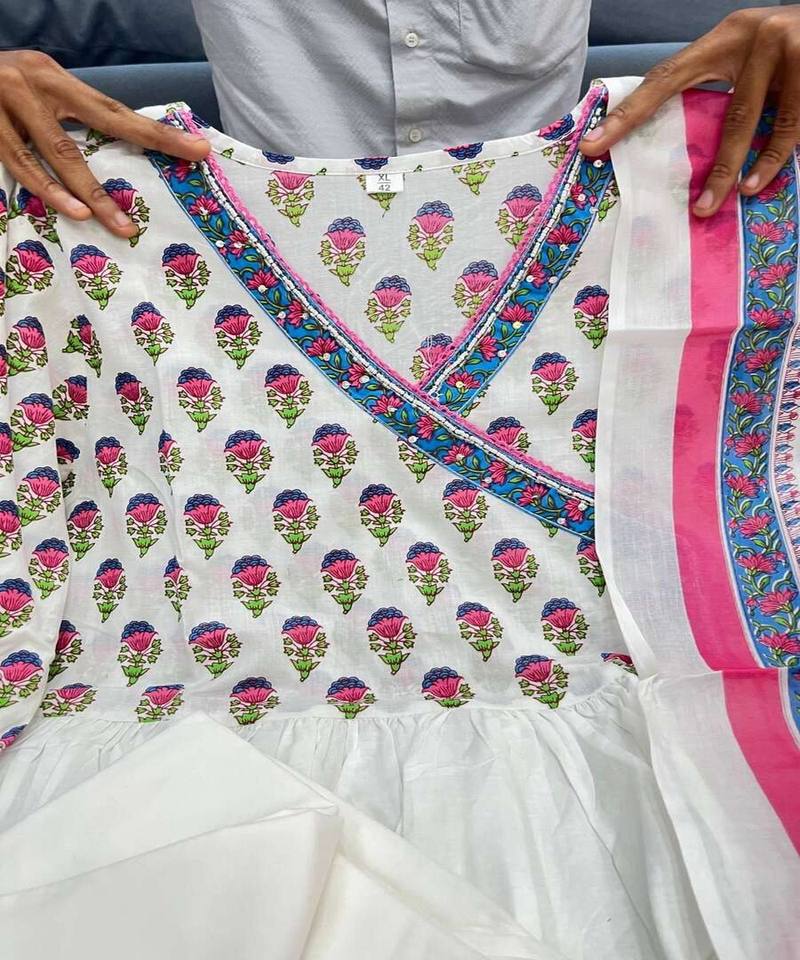 Anarkali ผ้าฝ้ายพิมพ์ลายดิจิทัลเสื้อผ้าแนวพื้นเมือง