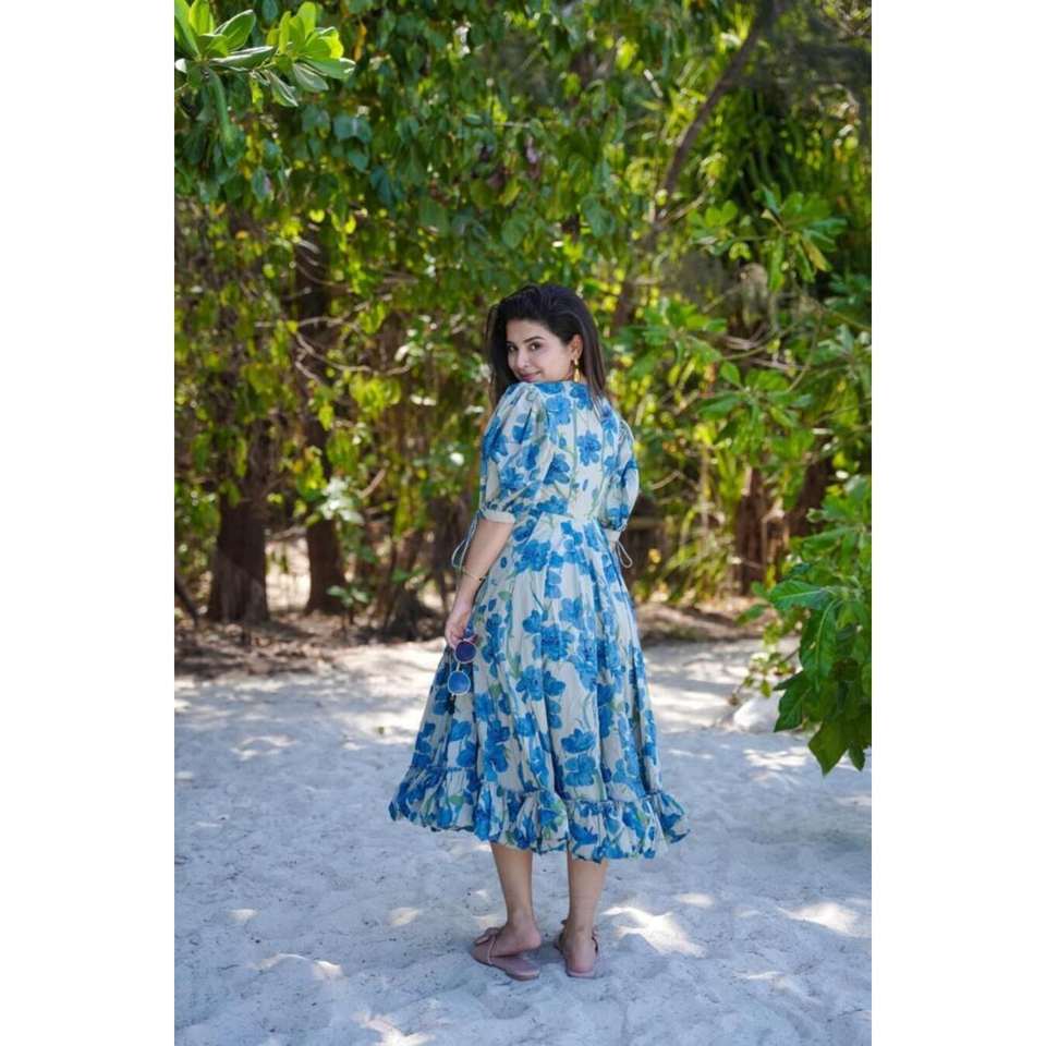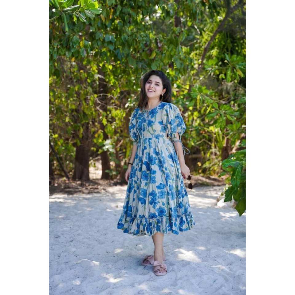 ท้องฟ้าหนึ่งชิ้นพิมพ์ลายดอกไม้มัสลินมาใหม่