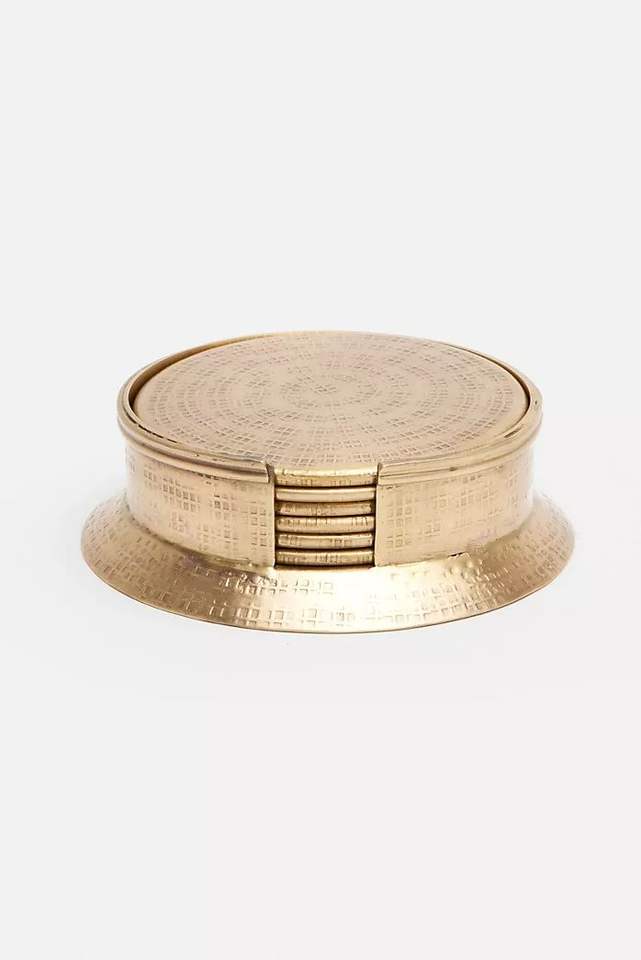 ชุดจานรองแก้วเคลือบสีทองแบบเรียบหรู4ชิ้นสำหรับรับประทานอาหารในบ้านมาใหม่