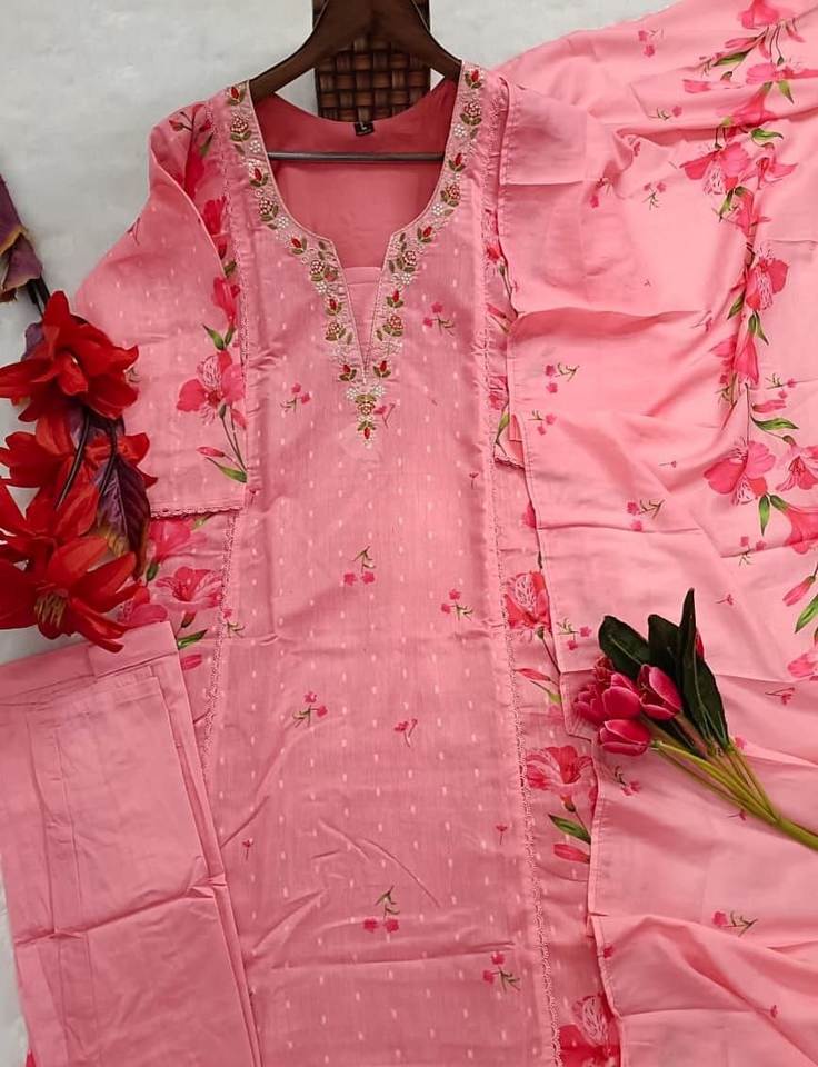 ชุดสัลวาร์ คามีซ ผ้าไหมสำหรับผู้หญิงแบบใหม่ พร้อมรายละเอียดคอเสื้อผ้าชานด์ ผ้ากางเกง และผ้าคลุมไหล่ สำหรับงานปาร์ตี้