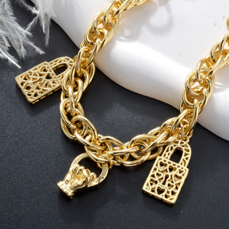 สร้อยข้อมือแบบเชื่อมต่อชุบทอง 14k ลายล็อค รุ่นใหม่ ขายส่ง สำหรับผู้หญิง