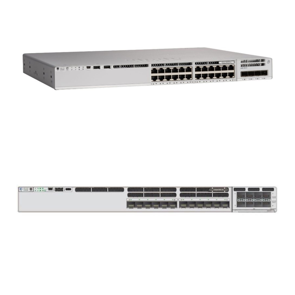 สวิตช์ศูนย์ข้อมูลอัปลิงค์โมดูลาร์พอร์ตไฟเบอร์12x25กรัม9300X ตัวเร่งปฏิกิริยา C9300X-12Y-E ใหม่