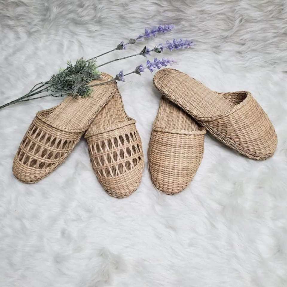 คอลเลกชันใหม่รองเท้าแตะผักตบชวา2024รองเท้าแตะหญ้าทะเลรองเท้าแตะจากวัสดุธรรมชาติ