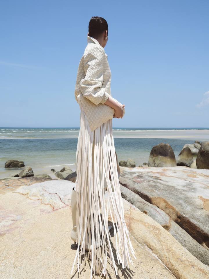 คอลเลกชันใหม่แจ็คเก็ตผู้หญิงแจ็กเก็ต keri Intrecciato หรูหราไม่มีสัตว์สีงาช้างเสื้อแจ็คเก็ตเสื้อผ้าผู้หญิงสำหรับฤดูหนาว