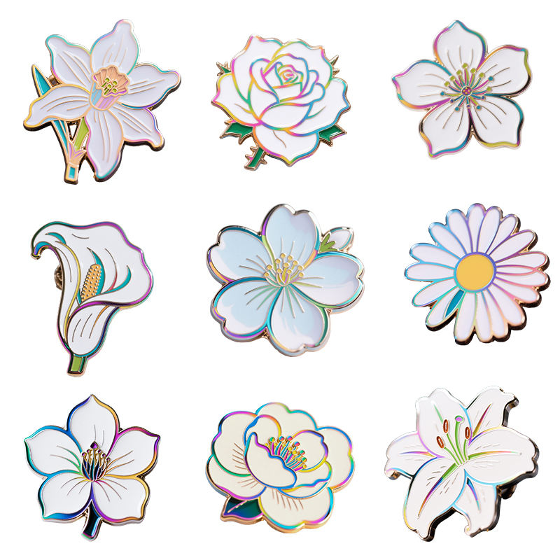 เข็มกลัดดอกไม้เคลือบสีรุ้งแบบใหม่ ดีไซน์ซับซ้อน งานโลหะประดับเสื้อผ้า กระโปรง ปกเสื้อ หมวก กระเป๋า