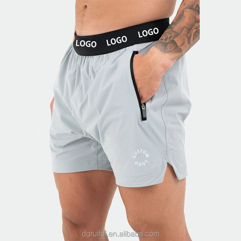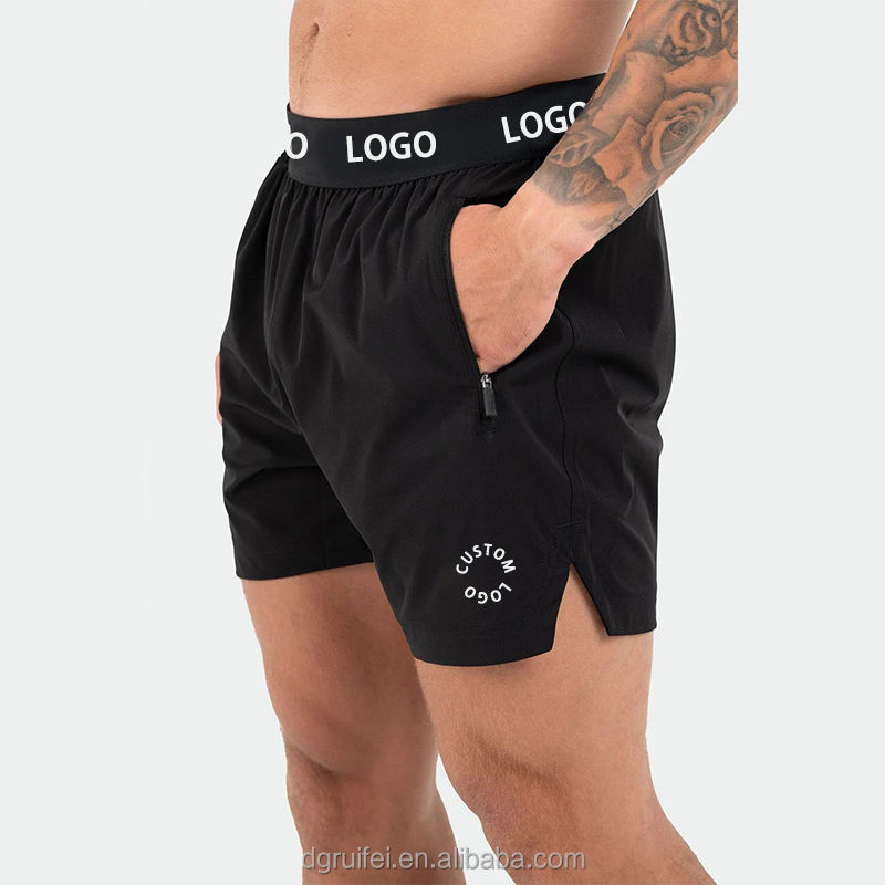 กางเกงขาสั้นออกกำลังกายสำหรับผู้ชาย รุ่นใหม่ โลโก้สั่งทำพิเศษ เอวยางยืด ผ้ารักษ์โลก ชายผ่า 5 นิ้ว สำหรับเล่นกีฬา แอคทีฟแวร์ ออกกำลังกาย ฟิตเนส