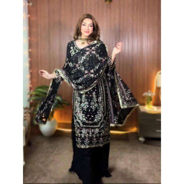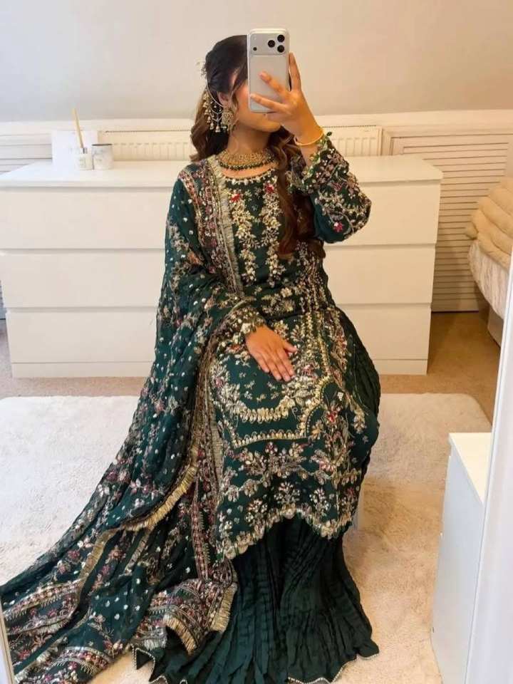 ชุดสาหรี่กะมีซงานแต่งงานดีไซน์ใหม่ พร้อมผ้าคลุมไหล่ปักลายหรูหรา ผ้าฟ็อกซ์กอการ์เกตเนื้อหนา แห้งเร็ว