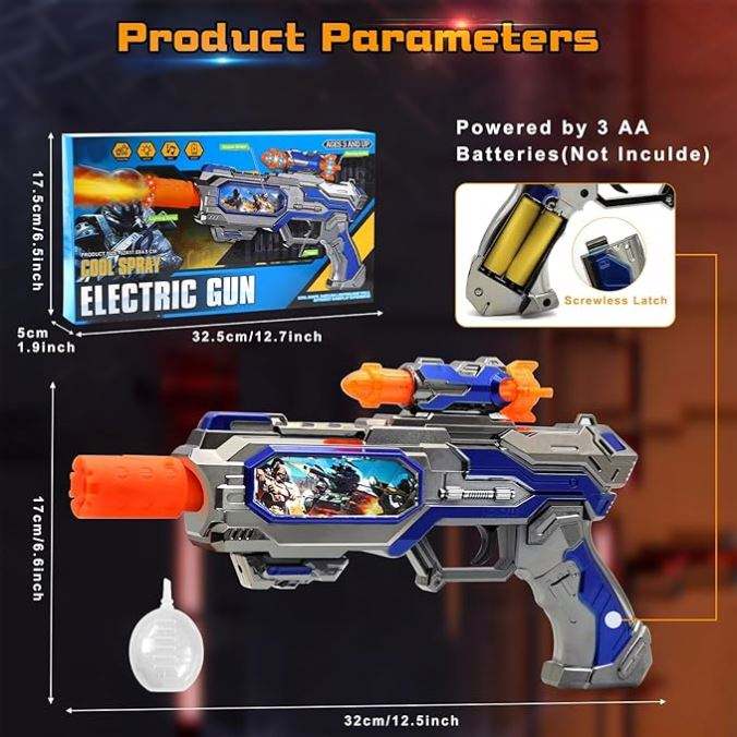 ปืนของเล่นอิเล็กทรอนิกส์รุ่นใหม่ พร้อมฟังก์ชั่นพ่นละอองน้ำ เสียง แสง และการสั่นสะเทือน ใช้พลังงานจากแบตเตอรี่ ทำจากพลาสติก สำหรับเด็ก
