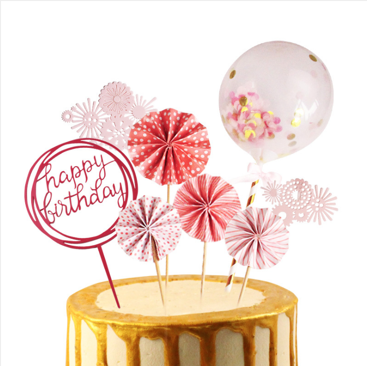 ชุดตกแต่งเค้กวันเกิดแบบพัดลมพับได้ ลูกโป่ง ล้อลม ชุดตกแต่งเค้กสุขสันต์วันเกิด สำหรับตกแต่งงานปาร์ตี้