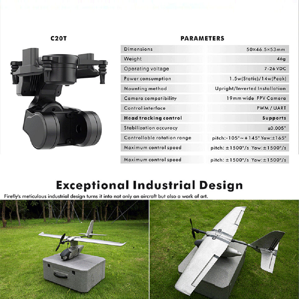 ควบคุมความเร็วสูงสุด:ระดับเสียง: + 1500 °/s Yaw:+ 1500 °/