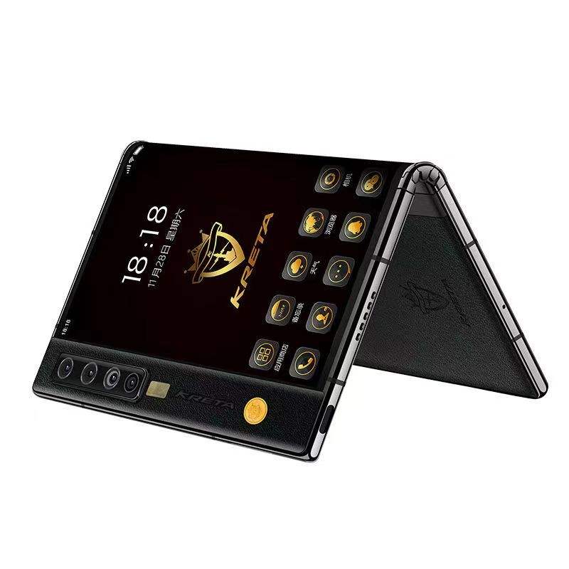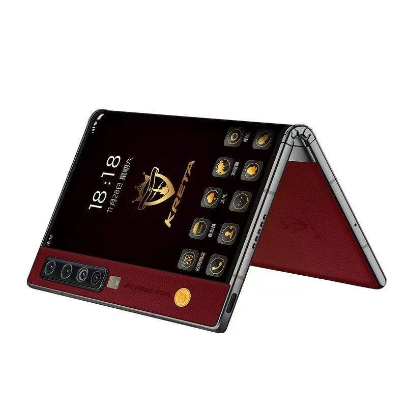 NEW Kreta V11V Folding Mobile Phone James Business Dual-screen 100MP High-end 5G Smartphone Snapdragon 865 Red Cowhide 12+512g