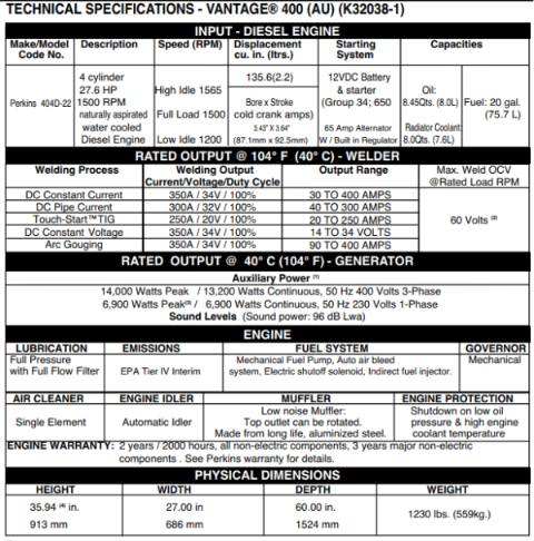 เครื่องเชื่อม NEW LINCOLN VANTAGE 400