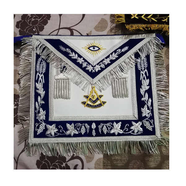 NEW MASONIC Silver and Blue Hand EMBROIDERED GRAND LODGE PAST MASTER APRON BEST QUALITY Masonic Royal Arch Grand Officer Apron