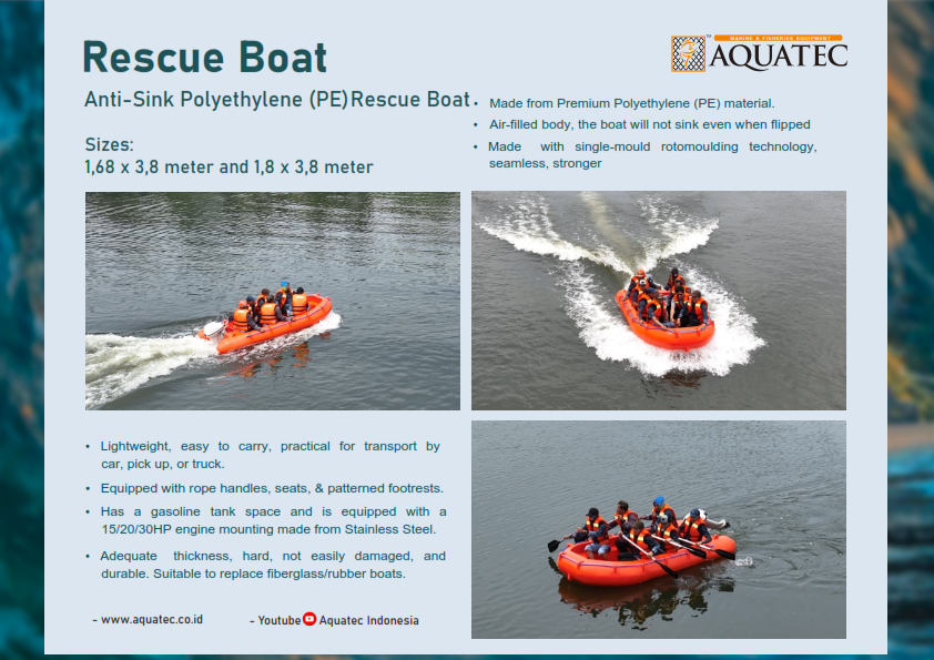 เรือกู้ภัย PE ป้องกันการจม Aquatec ความจุ 8 คน