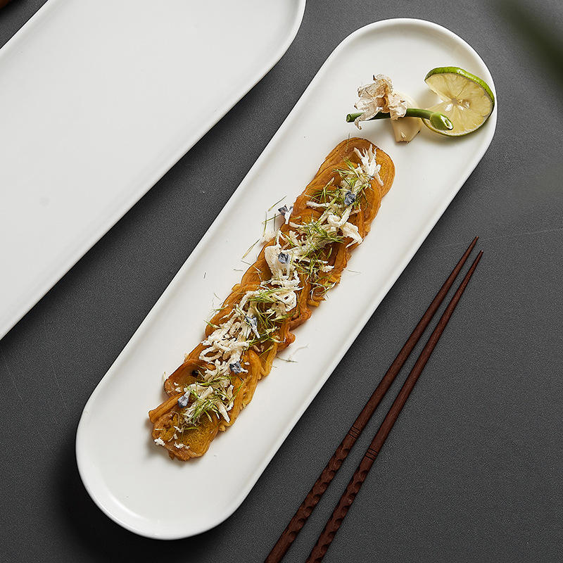 จานเซรามิกรูปทรงสี่เหลี่ยมผืนผ้าสำหรับเสิร์ฟซูชิ เค้ก เบอร์เกอร์ สเต็ก ของหวาน พาสต้า ซาชิมิ สลัด ถาดเสิร์ฟสำหรับร้านอาหาร
