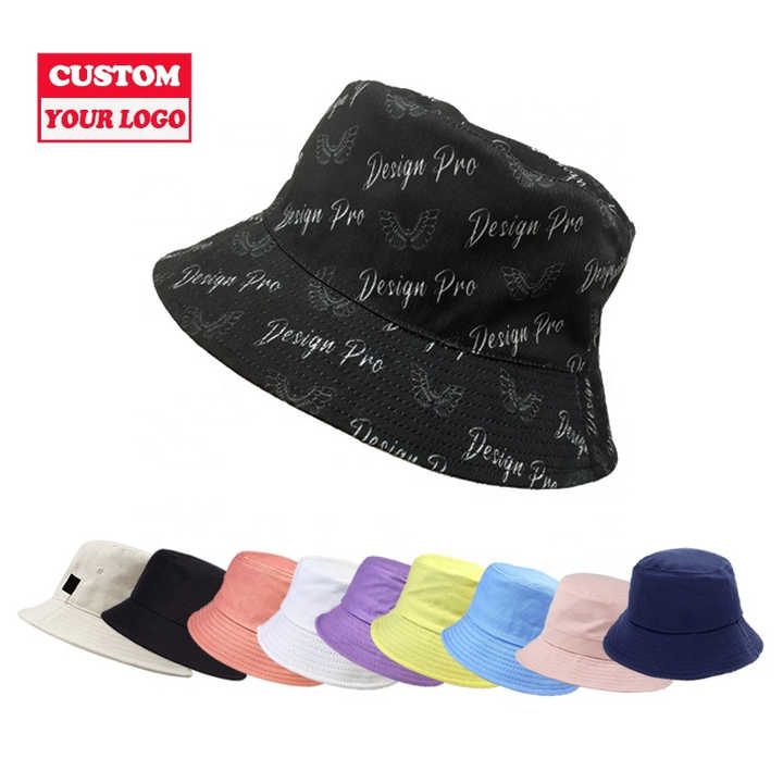 หมวกทรงถังผ้าคอตตอนพิมพ์ฉลากส่วนตัวใส่กลับด้านได้ใหม่ปักโลโก้ได้แฟชั่นออกแบบได้ตามต้องการ