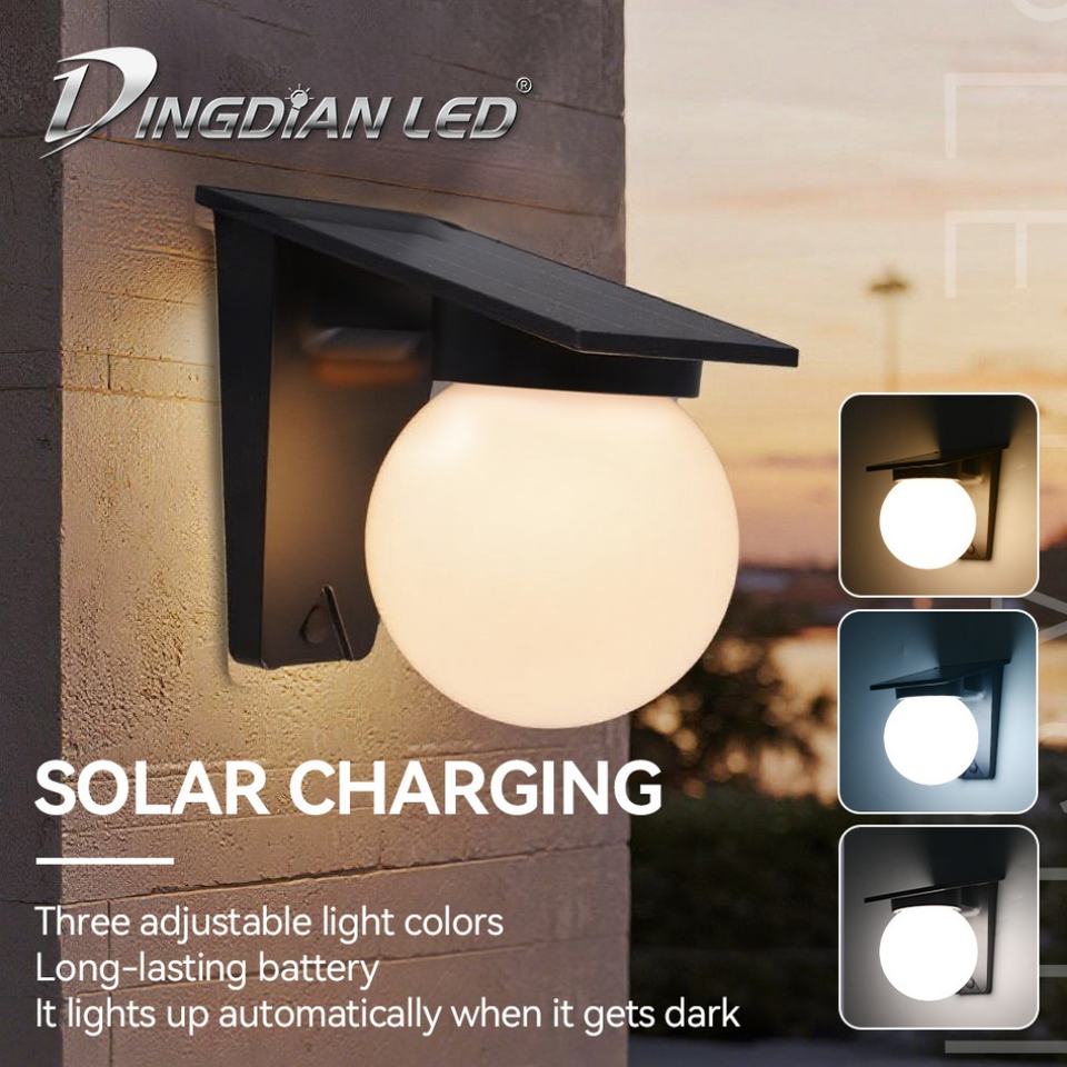 NEW Solar Wall Lamp Outdoor Waterproof Courtyard Landscape Villa Garden Lantern Tri-color Round Decorative Lamp Solar Wall Lamp