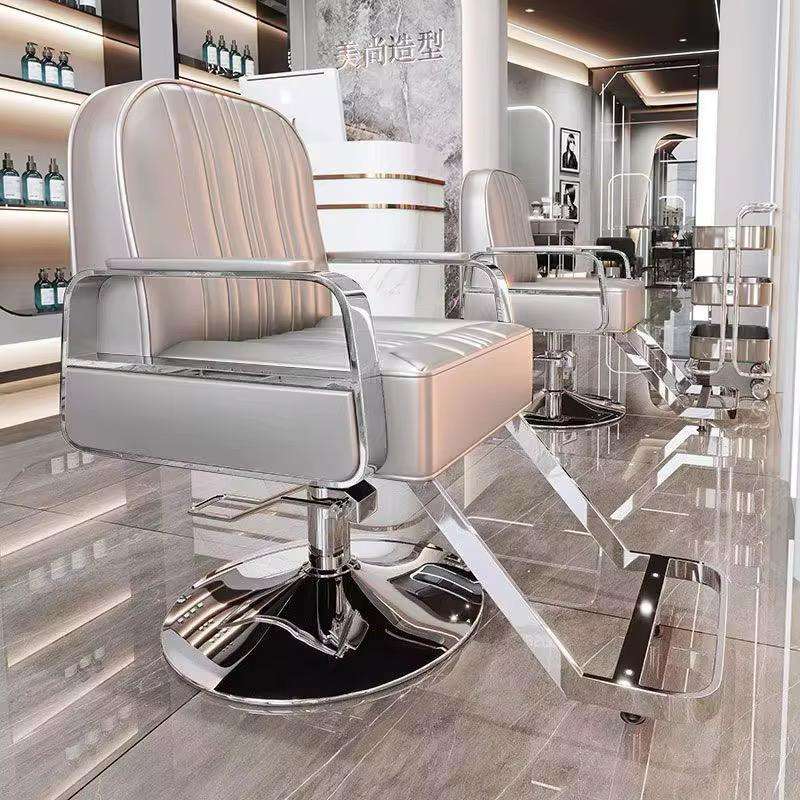 เก้าอี้ตัดผมไฮดรอลิกปรับเอนได้ทำจากสเตนเลสใหม่สำหรับร้านเสริมสวยแบบปรับนอนได้พร้อมการจัดแต่งทรงผมที่สวยงาม