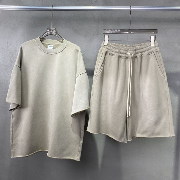 ชุดกีฬา GEO BROTHERS NEW Streetwear ผ้าฝ้าย 200 กรัม ชุดออกกำลังกาย เสื้อยืดและกางเกงขาสั้น 2 ชิ้น ผ้าซักแล้ว ชุดลำลองฤดูร้อนสำหรับผู้ชาย