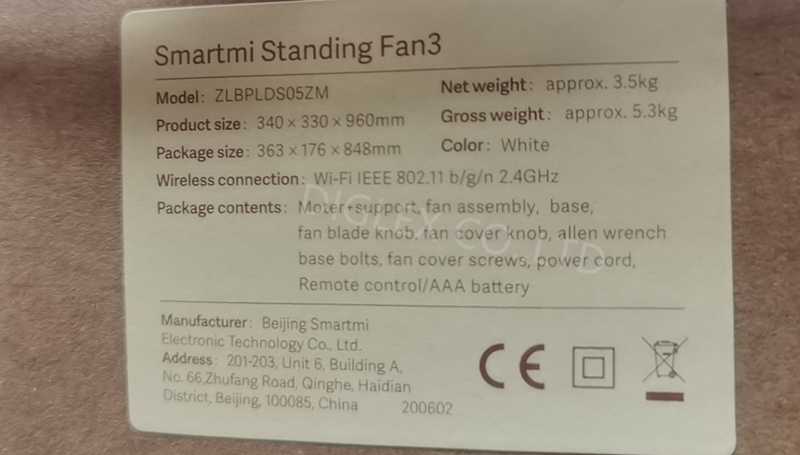 หมายเลขรุ่น:Mi Smart Electric Standing Fan 3
