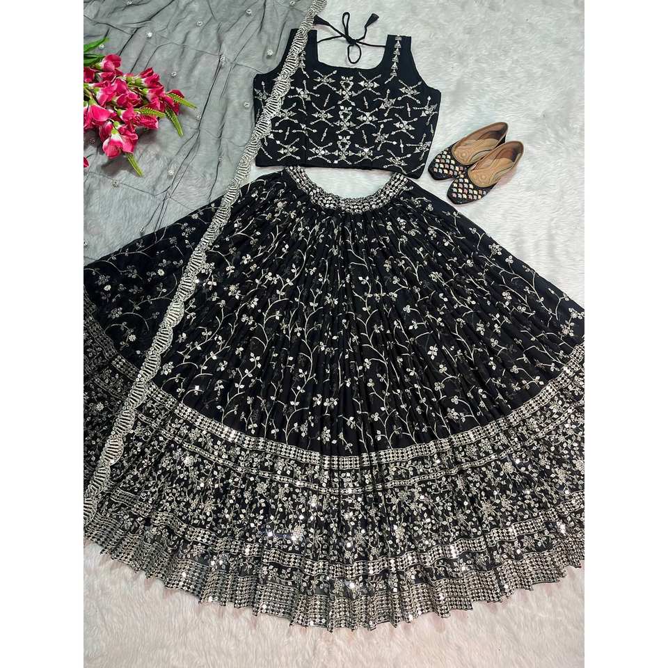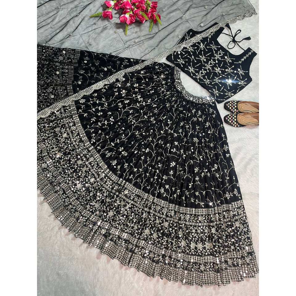 ชุดราตรีสีดำสไตล์แฟนซี ดีไซน์เนอร์ NF ไซส์ M สำหรับงานปาร์ตี้ แบบเลเฮนกา-โชลี