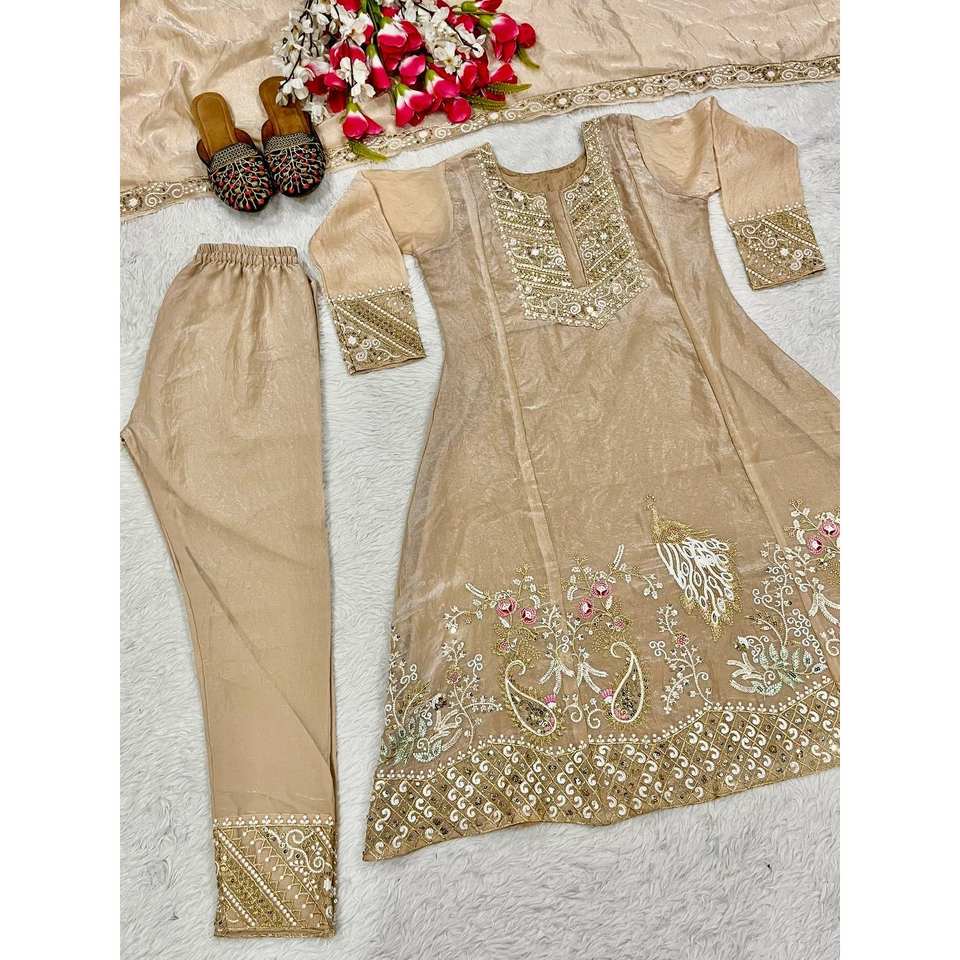 ชุดสูทปาร์ตี้สีเบจของผู้หญิงชุดสูทสำหรับงานปาร์ตี้ออกแบบโดยดีไซเนอร์ nF