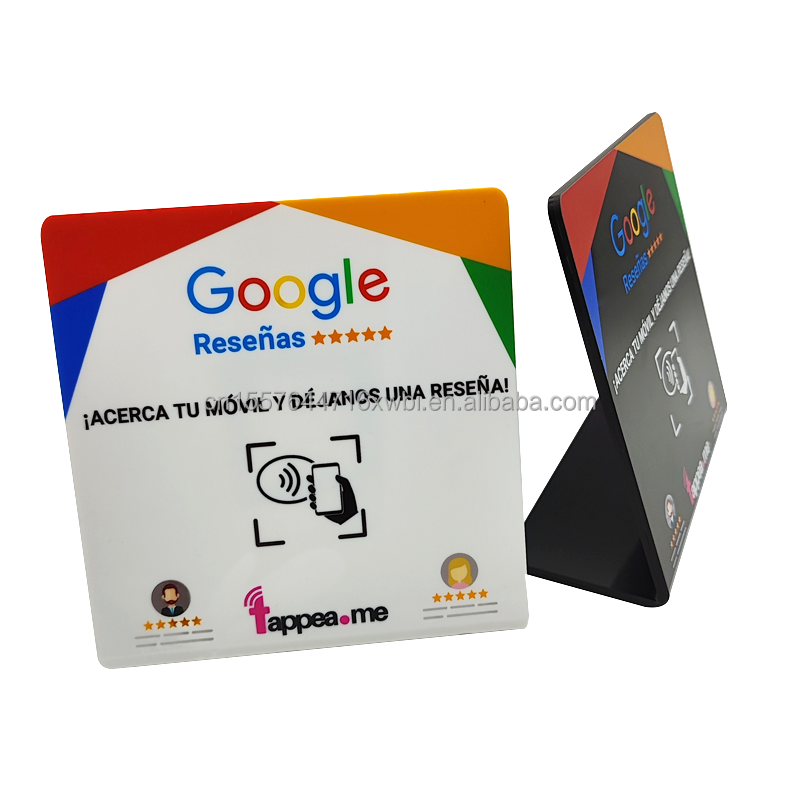 NFC Google Review Stand 13.56MHz Iso 14443A การพิมพ์โลโก้ที่กำหนดเอง Google Review NFC อะคริลิคห้าดาว