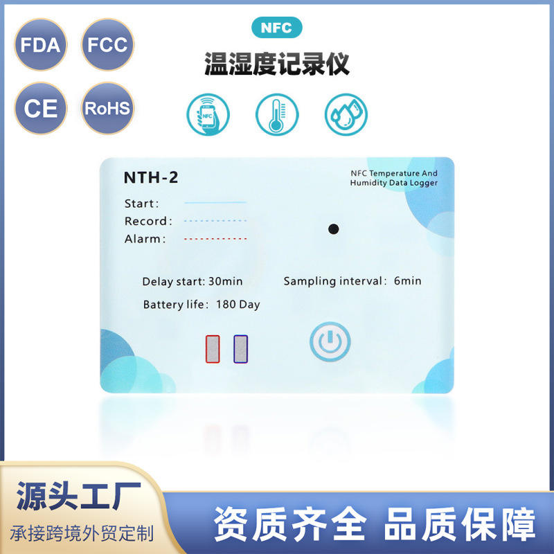 เครื่องบันทึกข้อมูลอุณหภูมิและความชื้น NFC รุ่น NTH-2 -30C~70C 0~99%rh ควบคุมผ่านแอป Bluetooth แบตเตอรี่ใช้งานได้นาน 180 วัน