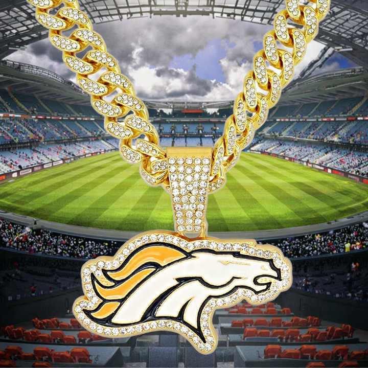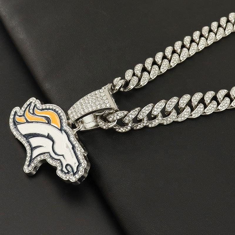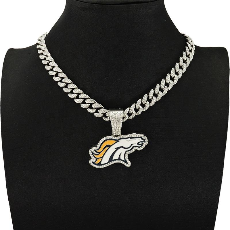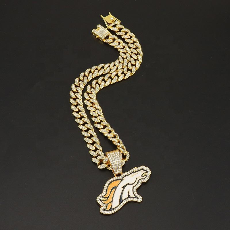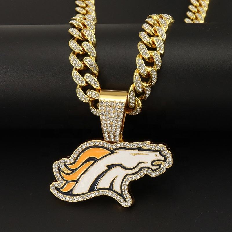 NFL denver Broncos ทีมฟุตบอลสร้อยคอแชมป์กีฬาจี้วิบวับสำหรับทุกเพศจี้เคลือบทองโลหะผสมพร้อมสายโซ่