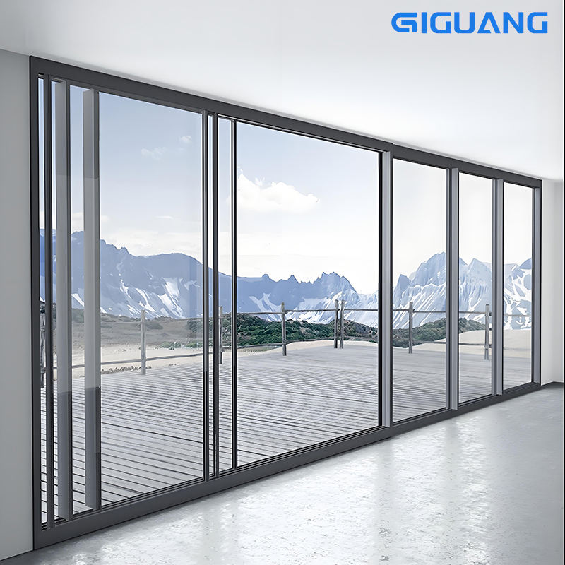 ประตูบานเลื่อนกระจกอลูมิเนียมกันความร้อนสำหรับลานบ้านที่มีการปรับแต่งได้กรอบบางเฉียบ