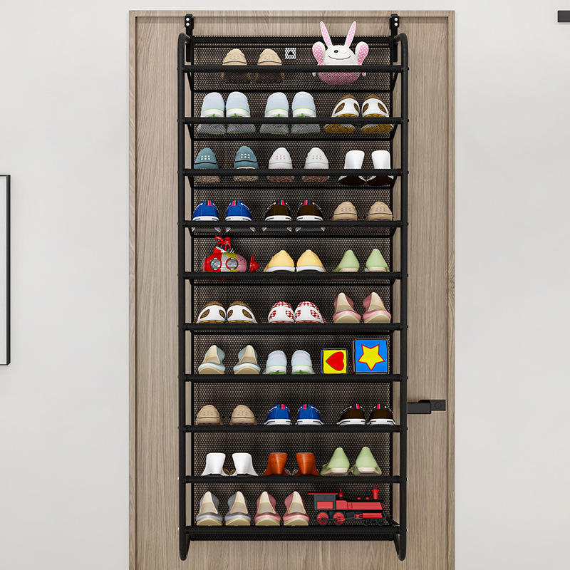 ชั้นวางรองเท้าโลหะติดผนังแบบเรียบง่ายประหยัดพื้นที่ในบ้านตู้รองเท้าประกอบหลายชั้นกันฝุ่นสำหรับประตูหอพักด้านหลัง