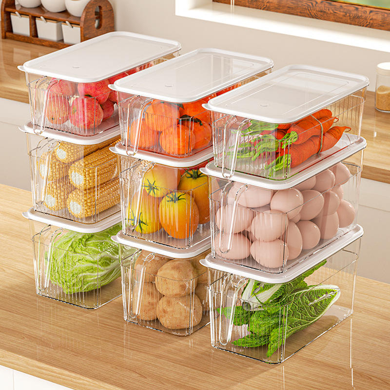 กล่องเก็บอาหารพลาสติกใสสีขาวทันสมัย พร้อมฝาปิดและหูจับ ผลิตด้วยวิธีฉีดขึ้นรูป สำหรับเก็บผักผลไม้ในตู้เย็น
