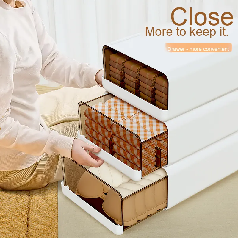 กล่องเก็บของแบบลิ้นชักพลาสติกหนาพิเศษสำหรับจัดระเบียบชุดชั้นใน เสื้อผ้า ของใช้ในบ้าน ถุงเท้า และชุดชั้นในอื่นๆ