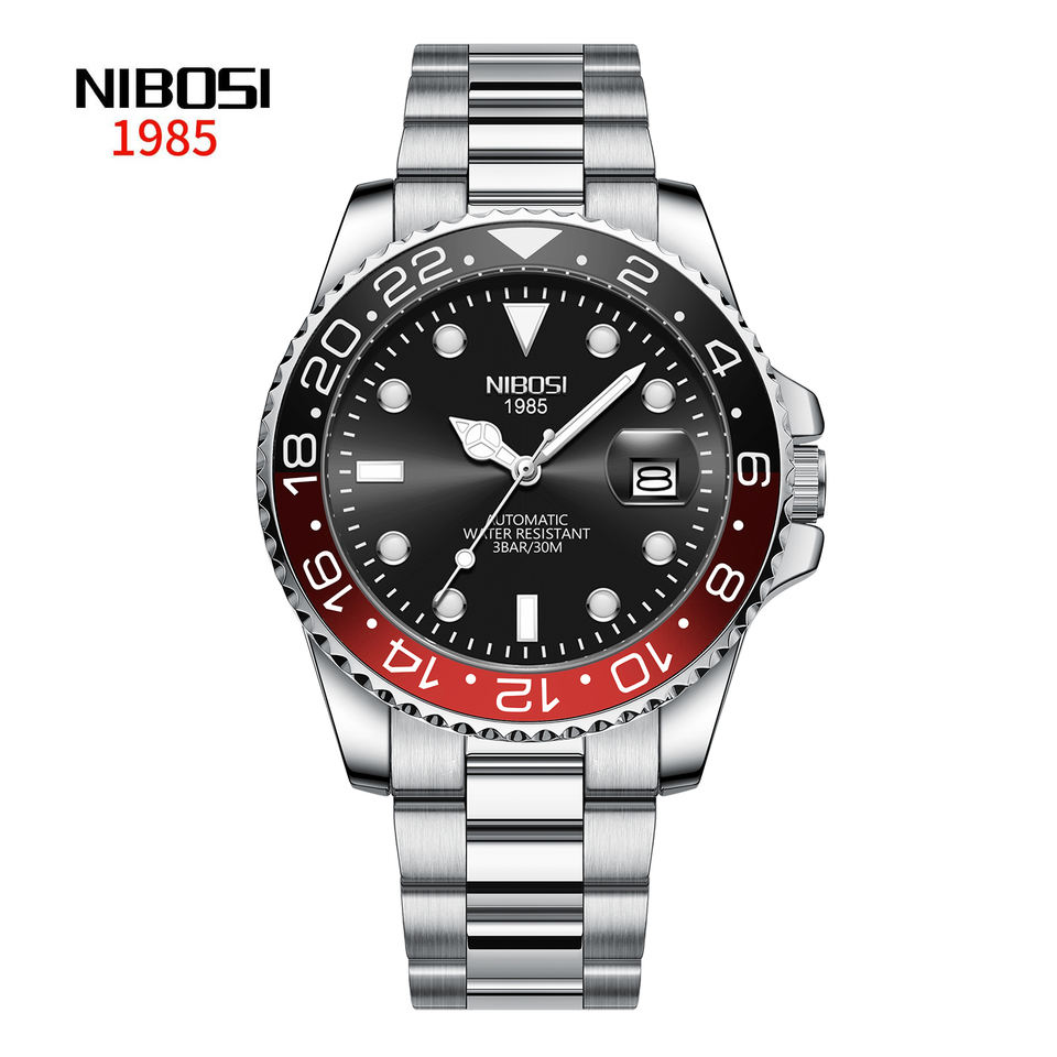 นาฬิกากลไกอัตโนมัติหรูหราของผู้ชาย Nibosi 2597เคสอัลลอยหน้าปัดกระจกสายสแตนเลสสตีลแบบลำลอง