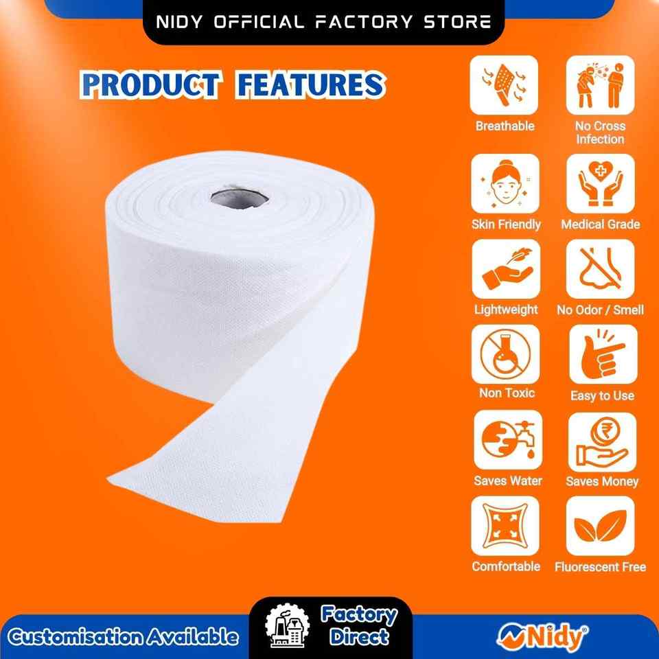 ม้วนผ้าขนหนูแบบใช้แล้วทิ้งผ้าไม่ถักเนื้อนุ่มดูดซับถูกสุขอนามัยใช้เพียงครั้งเดียวสำหรับการดูแลสุขอนามัยส่วนบุคคลทุกวันความงามการดูแลส่วนบุคคล