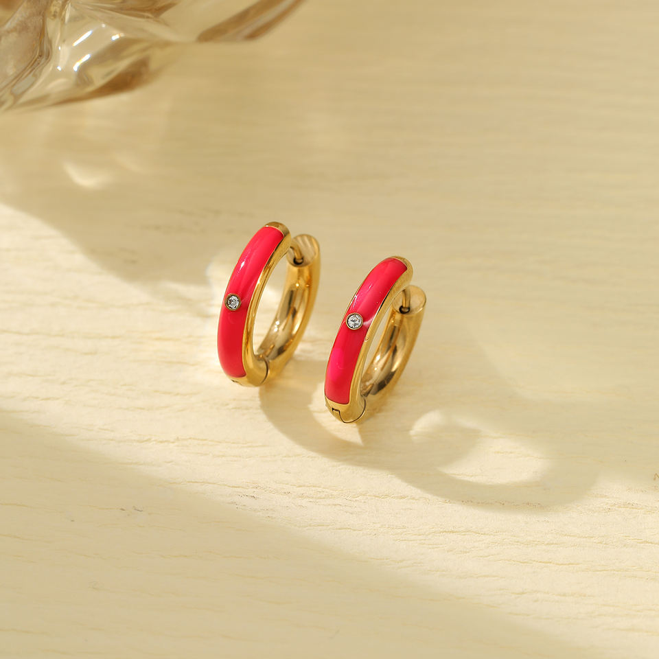 Nimai ต่างหูห่วงสแตนเลสเคลือบน้ำมันสีสันสดใสเครื่องประดับชุบทอง18K สำหรับผู้หญิง