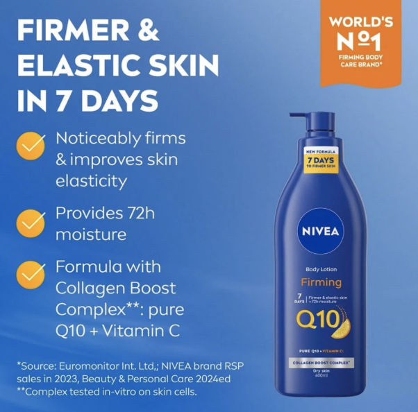 โลชั่นบำรุงผิวที่อุดมไปด้วย Q10 Nivea + วิตามิน C