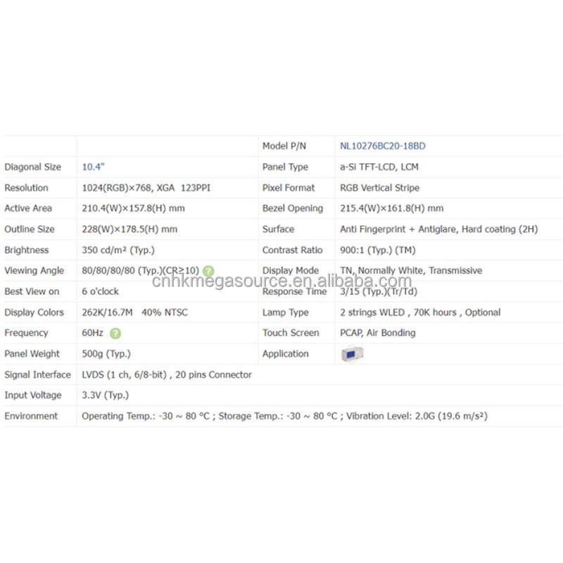 NL10276BC20-18BD จอแสดงผล LCD ความละเอียด10.4นิ้ว1024*768สายโซ่ที่เชื่อถือได้โมดูลแสดงผล LCD TFT