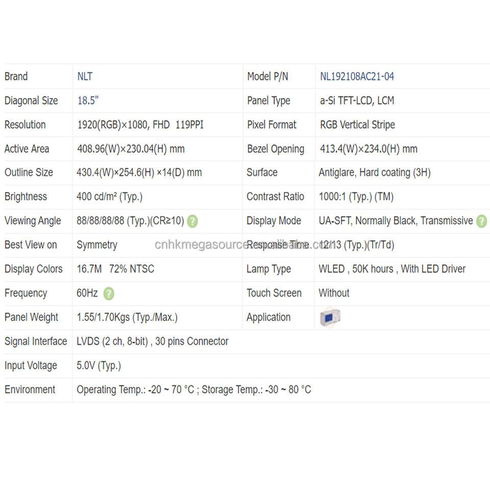 เลือกเลย型号: NL192108AC21-04 เอ็นแอล192108เอซี21-04