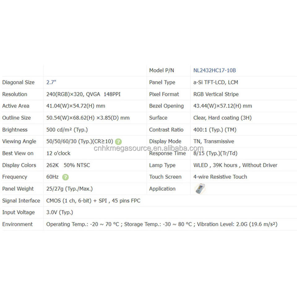 โมดูลหน้าจอ LCD TFT รุ่น NL2432HC17-10B ขนาด 2.7 นิ้ว ความละเอียด 240*320 มีสินค้าในสต็อก