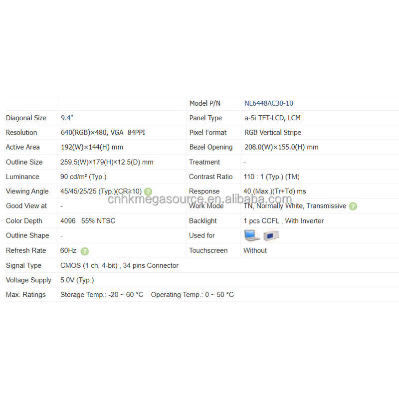 NL6448AC30-10หน้าจอ9.4นิ้ว640*480จอแสดงผล LCD NL6448AC30-10แผง LCD